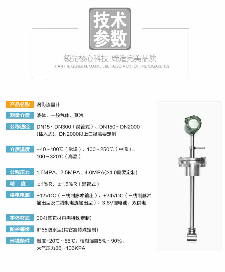 1、采用**數控設備加工傳感器的表體和旋渦發生體等,確保加工精度,從而使零部件(特別是旋渦發生體)的通用性強,從而真正做到不會因零部件的更換而影響傳感器的重復性和精度;能產生強大而穩定的渦街信號;