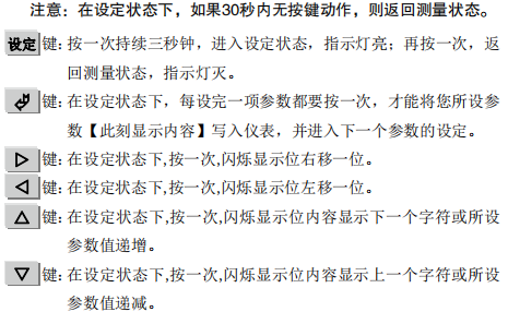 共有六個使用鍵,其中有測量狀態(tài)使用鍵和設(shè)定狀態(tài)使用鍵, 選用優(yōu)質(zhì)薄膜觸摸式鍵盤,按鍵時伴有清脆的蜂音。