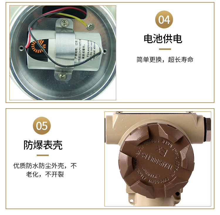 12、現場顯示型液晶屏顯示清晰直觀,功耗低,3V鋰電池供電可連續運行5年以上,耐腐蝕,適用于酸堿溶液。