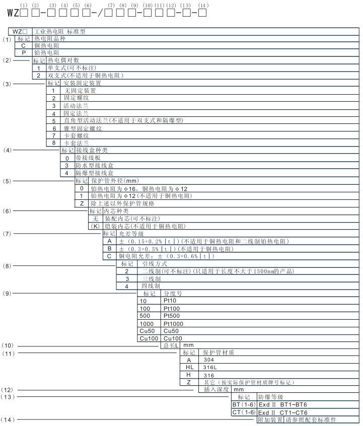 隔爆型熱電阻通過特殊結(jié)構(gòu)的接線盒,把其外殼內(nèi)部爆炸性混合氣體因受到火花或電弧等影響而發(fā)生的爆炸局限在接線盒內(nèi),生產(chǎn)現(xiàn)場(chǎng)不會(huì)引超爆炸。隔爆型熱電阻可用于Bla--B3c級(jí)區(qū)內(nèi)具有爆炸危險(xiǎn)場(chǎng)所的溫度測(cè)量。