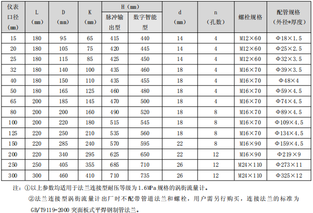三、法蘭連接型渦街流量計尺寸