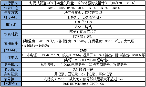 3、氣體羅茨流量計技術參數