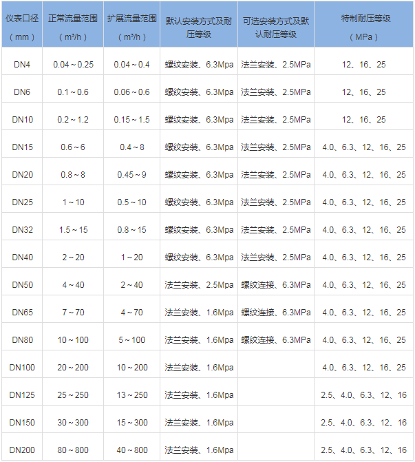 三、小口徑渦輪流量計技術(shù)參數(shù)