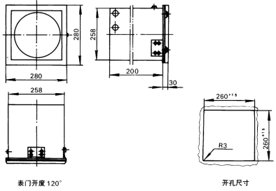 16、開孔尺寸:260×260