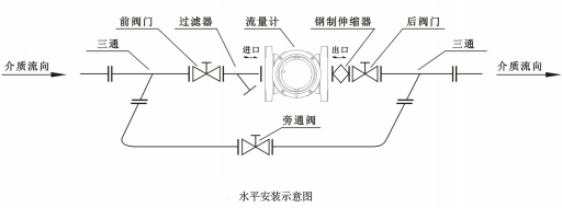 2、裝置流量計前必需肅清管道中的雜質(垂直裝置時應特別留意肅清流量計前彎頭內的條質),防止異物進?入而損壞流量計,管道上的內壁應清潔無積垢。