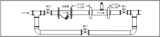 渦輪流量計對管道內流速分布畸變及旋轉流是敏感的,進入傳感器應為充分發展湍流,因此要根據傳感器上游側阻流件類型配備必要的直管段或整流器,要求入口段和出口段直管段長度。