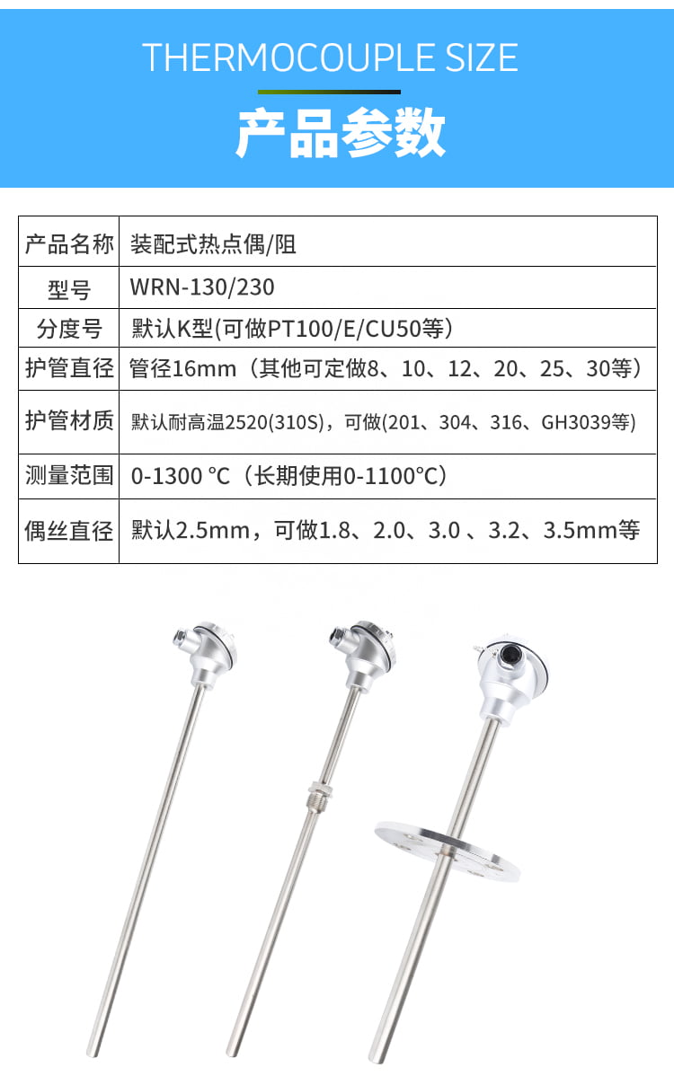 熱電偶的熱電動熱將隨著測量端溫度升高而增長,它的大小只與熱電偶材料和兩端的溫度有關(guān)、與熱電極的長度、直徑無關(guān)。各種的外形常因需要而極不相同,但是它們的基本結(jié)構(gòu)卻大致相同,通常由熱電極、絕緣套保護管和接線盒等主要成分組成。