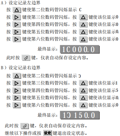 例三:**通道的量程范圍是4~20mA信號,顯現范圍是-100.0~100.0℃ 記載范圍是0.0~150.0℃。