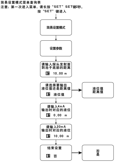 2、選擇丈量形式: 丈量形式分間隔丈量和物位丈量。出廠默許為物位丈量。