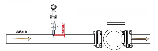 上游10倍口徑直管段,下游5倍口徑直管段,可正常測量。
