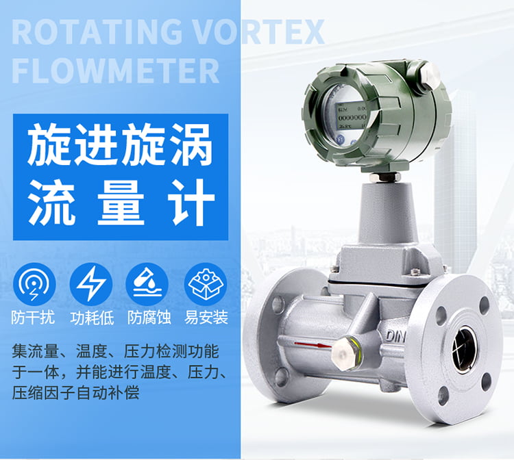 旋進旋渦流量計是上世紀70 年代開端呈現的流量計,它的工作原理是:進入氣體旋進旋渦流量計的氣體,首先經過螺旋起旋器后被強迫旋轉加速,構成旋渦,旋渦的中心為渦核。被加速的旋渦進入擴展段后急劇減速,壓力上升產生回流,在回流的作用下,渦核就盤繞流量計的軸心線作螺旋進動。經過敏感元件感應的辦法丈量出旋渦進動頻率f,就可推導出流量Q。旋進旋渦流量計可普遍應用于石油、化工、電力、冶金、城市供氣等行業丈量各種氣體流量,是目前油田和城市自然氣輸配計量和貿易計量的**產品。