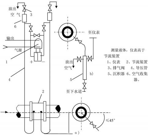 丈量介質為清潔的氣體流量時,設備方法一般為差壓變送器高于、低于節省設備兩種取壓口方位應契合上述設備要求,當差壓變送器低于節省 設備時,導壓管有必要向下彎至差壓變送器,并在*低處設備放水閥和堆積器。