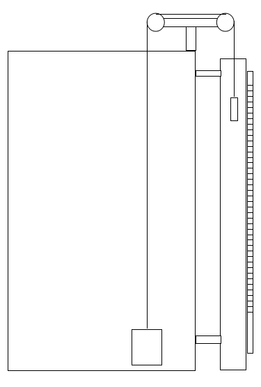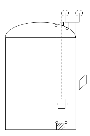 1、依照兩個導向滑輪的間距,在容器上方開三個孔,分別焊接導向螺栓管和滑輪導管;在容器外側焊接標尺支架,高度以堅持兩個導向滑輪水平為準