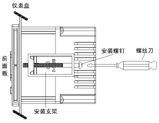 2、用儀表所帶的安裝支架如上圖所示安裝(儀表左右兩側各安裝一個支架,儀表盤安裝支架所用螺絲是M4標準螺絲)。